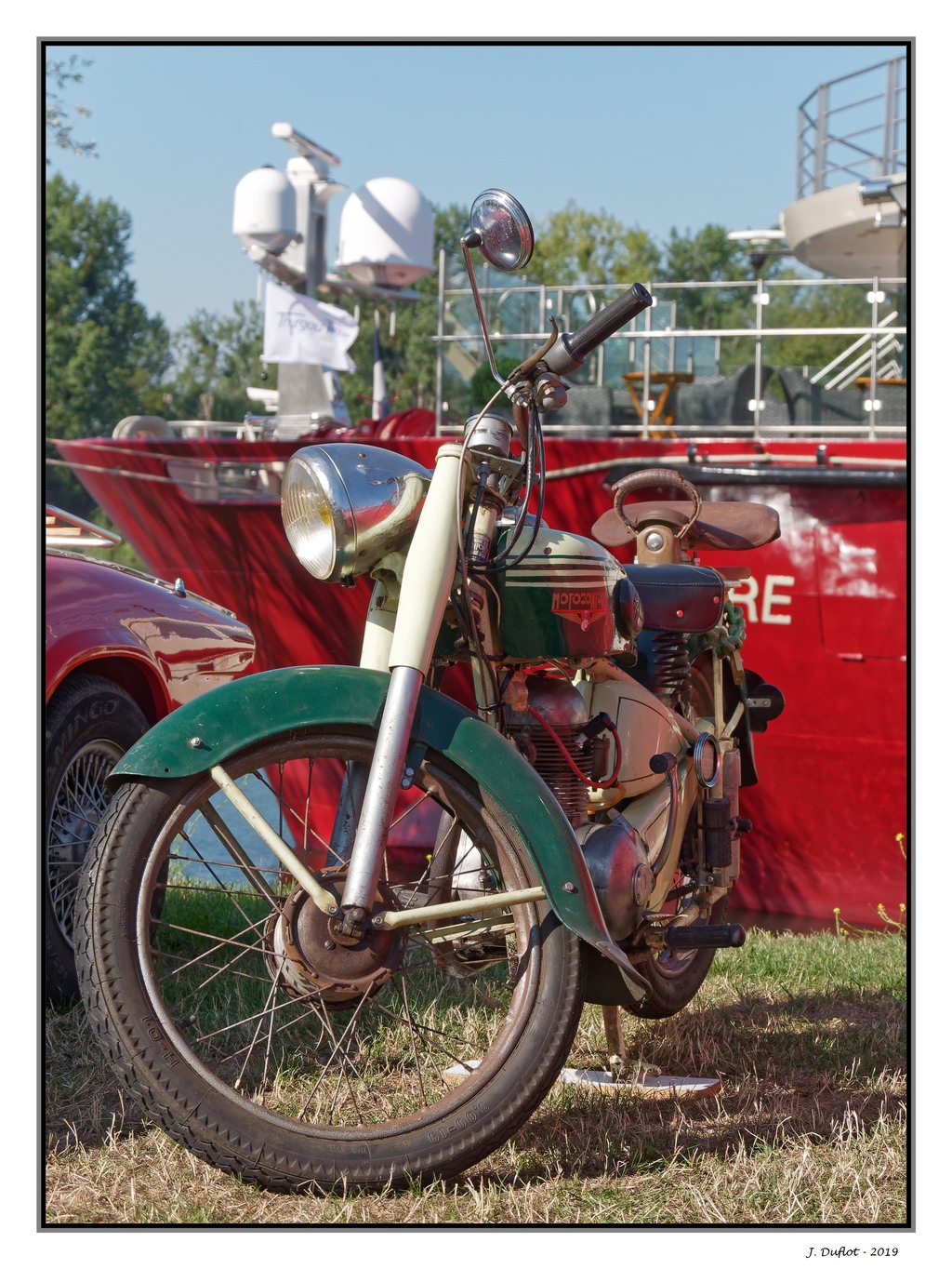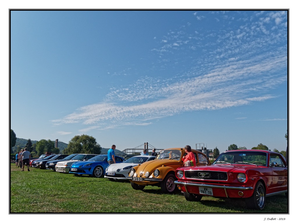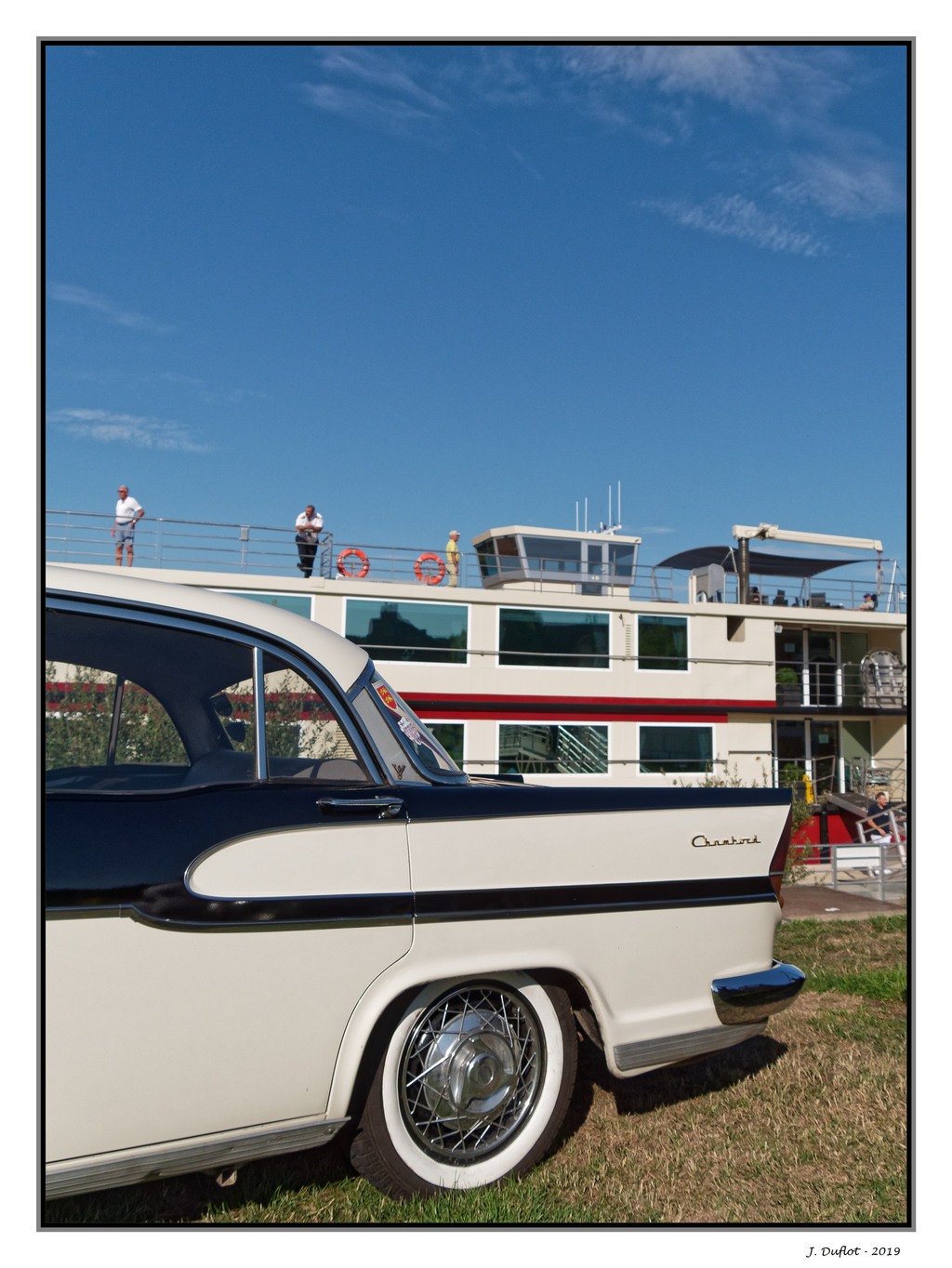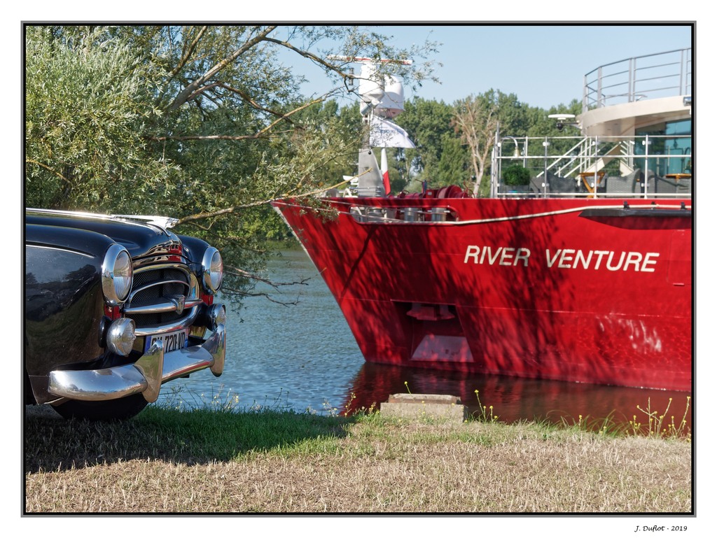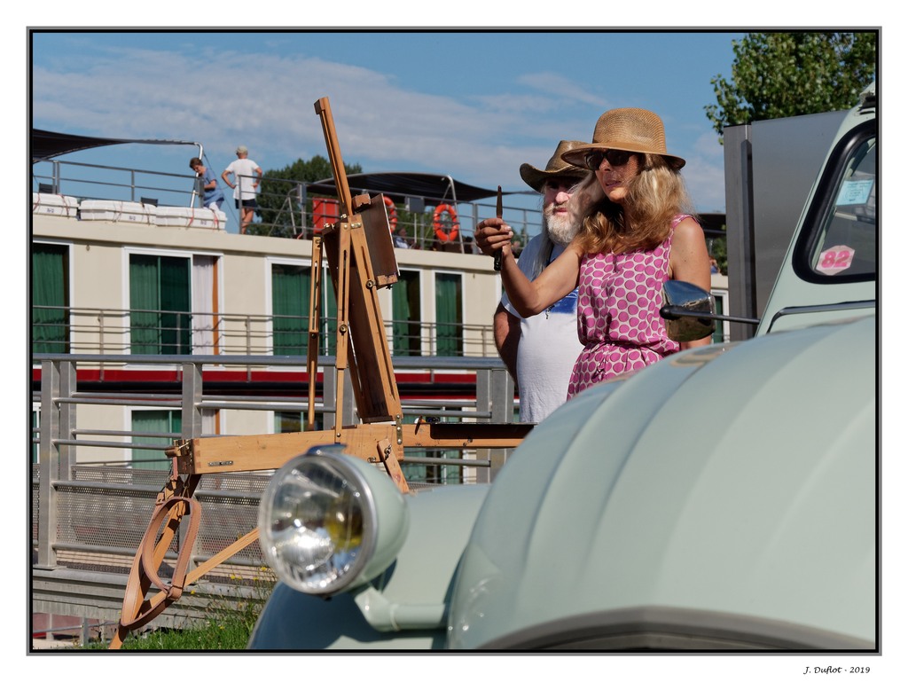 Rassemblement mensuel des Vieilles Gaillardes en bord de Seine en parallèle du Festival international de peinture en plein air et de la brocante. Rencontre avec l’artiste peintre Cécile Guth Jaeger inspirée par la belle Simca rouge.