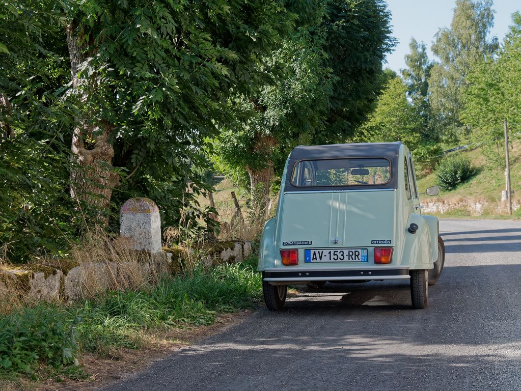 La température au lever du jour frisait le point de gelée. 2°C au thermomètre numérique de la 2cv… Bon, il ne faut pas prendre de risques, la 2cv a endossé son cache-nez de calandre.
