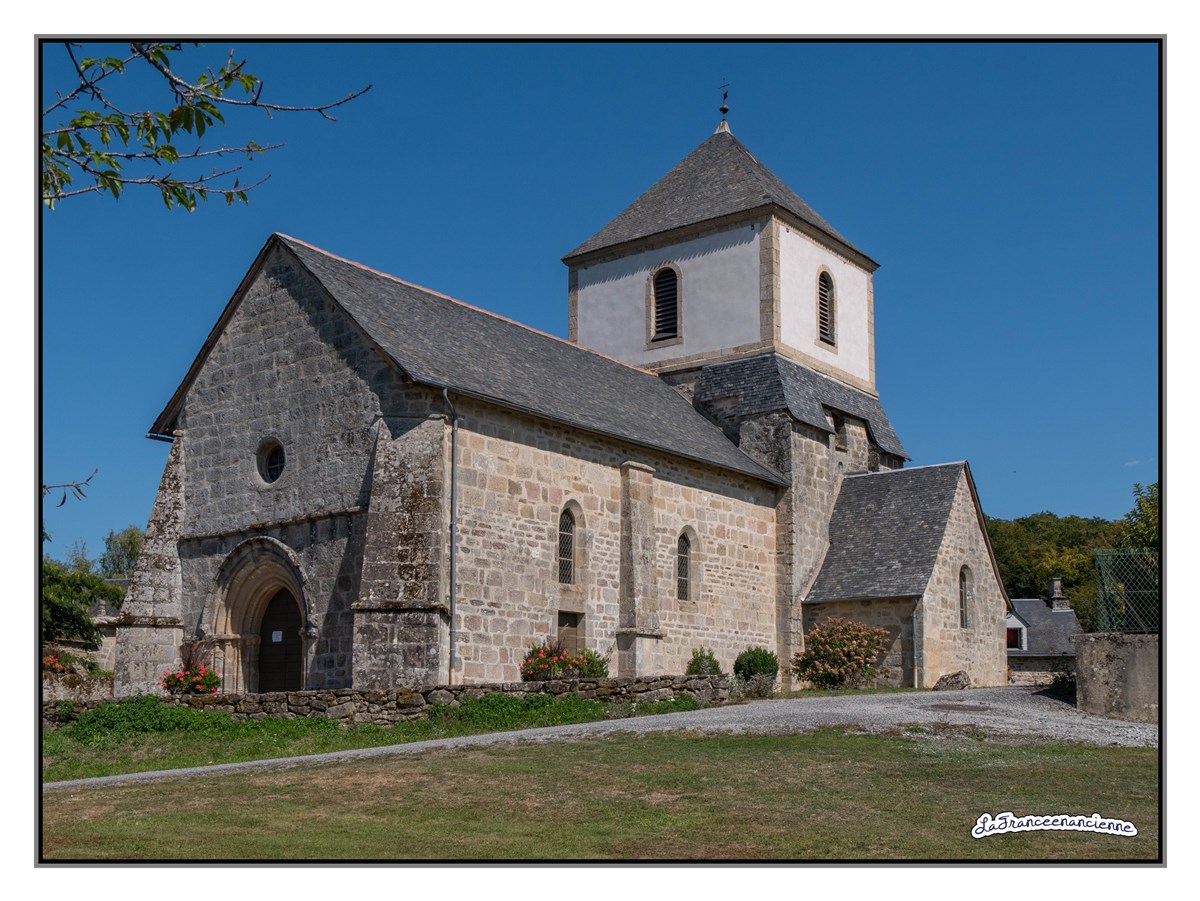 L’église St Martial à Lestards. L’édifice est couvert par un toit de chaume (unique en France).