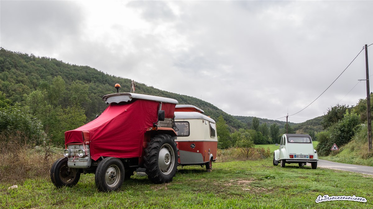 La journée nous a gratifiée de belles rencontres. Un nomade en tracteur et sa caravane Eriba Puck et une balade en « Meule » croisée à Cajarc à laquelle participait Jean-Claude Amilhat, la fine plume pleine d’humour d’Auto rétro et compère de Thierry Dubois.