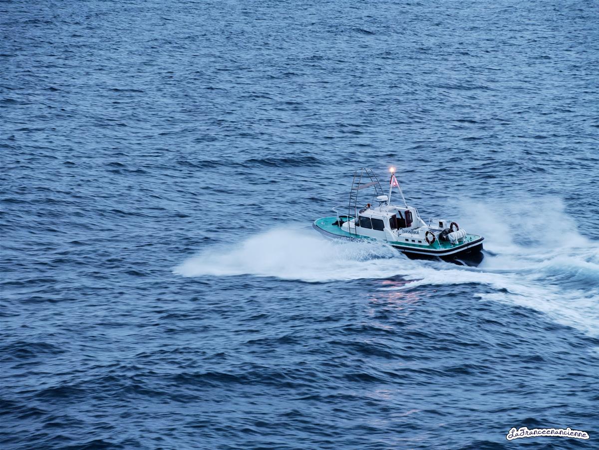Le bateau du pilote et l’arrivée au port