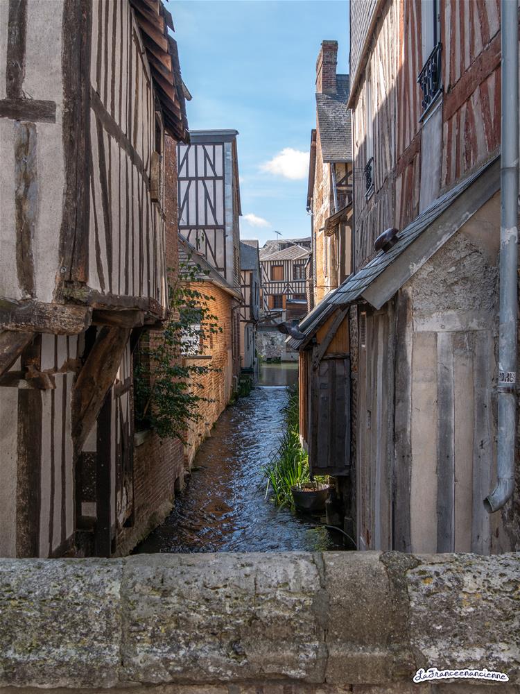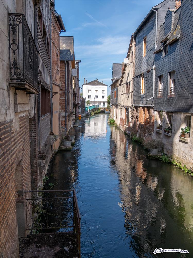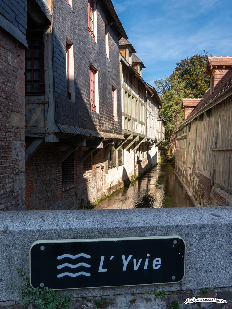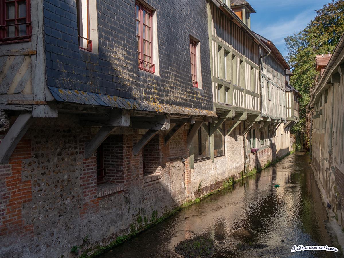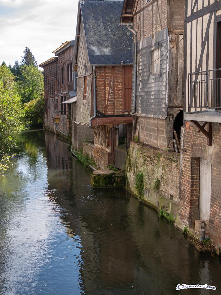 Fleuve La Touque à Pont-Audemer. La Touque se jette dans la mer à Deauville.