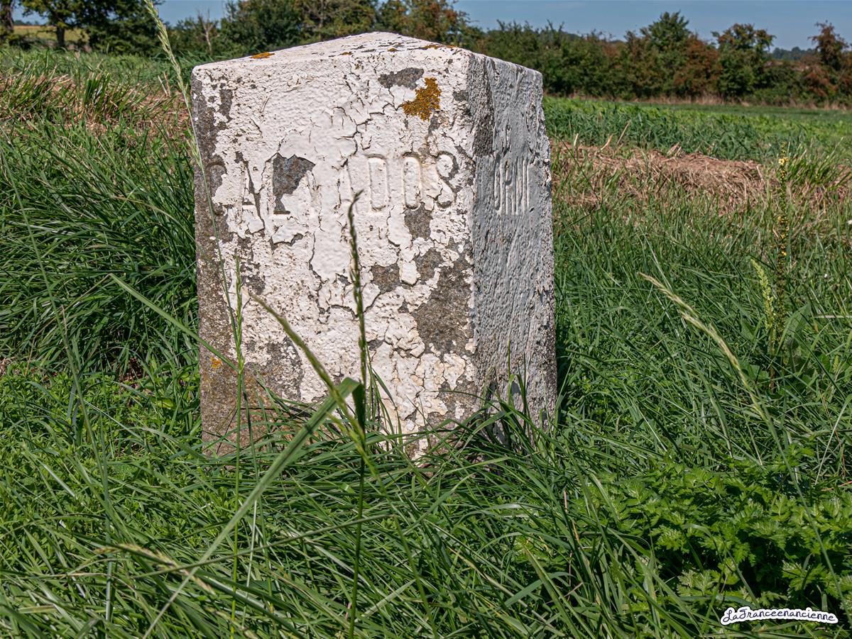 Borne interdépartementale entre le Calvados et l’Orne sur la D63a avant Marais la Chapelle