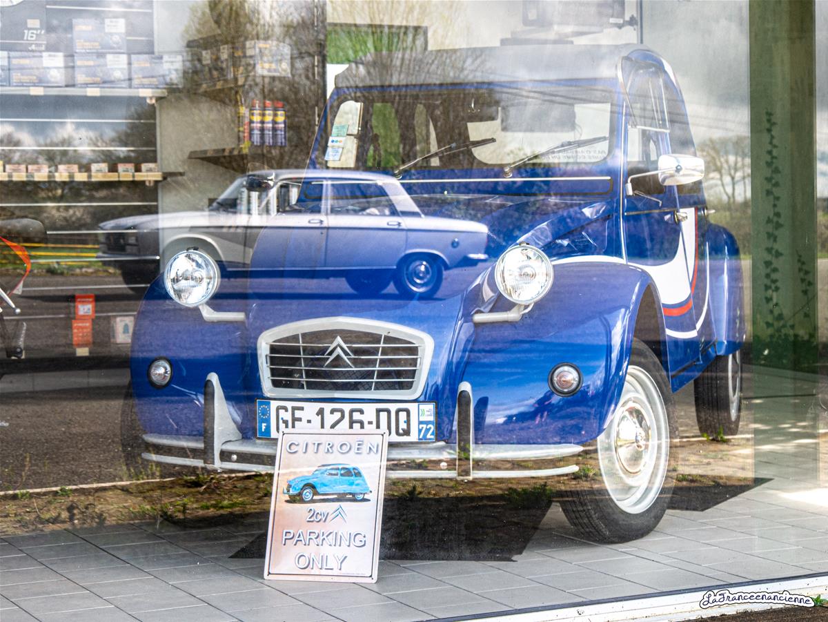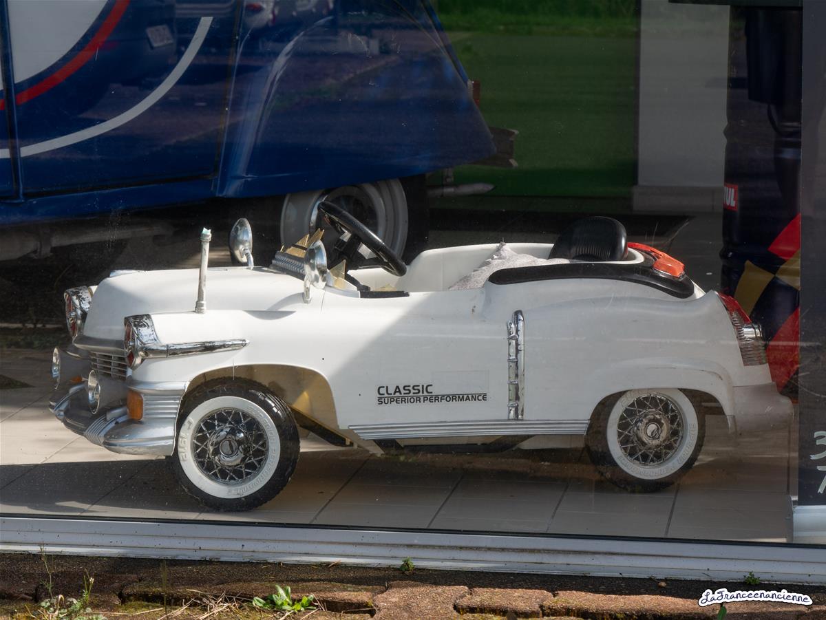 Encore une voiture à pédale … Le reflet de la 304 en superposition de la 2cv.