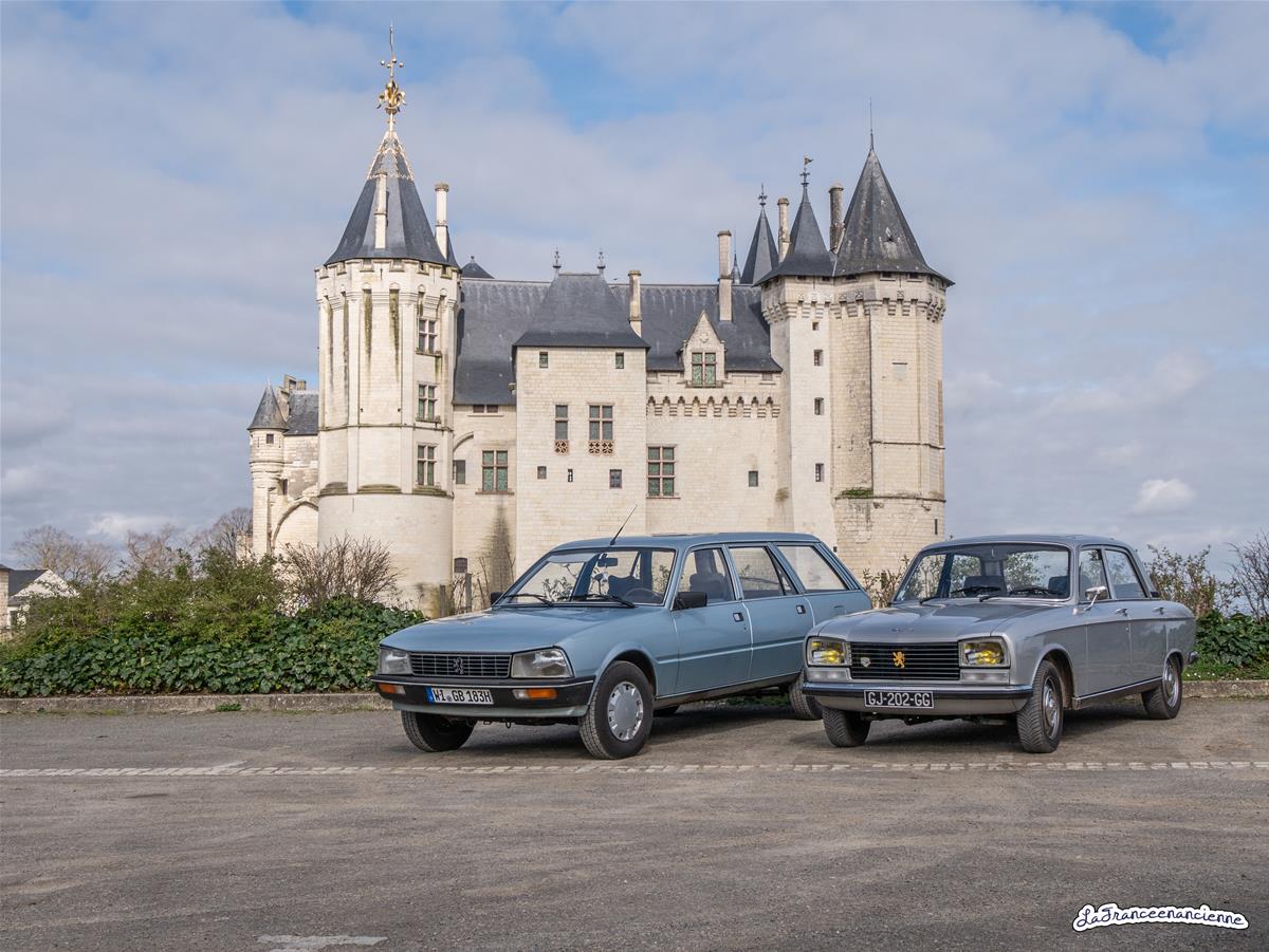 Rencontre d’un couple franco germanique au château de Saumur ce matin. Ils viennent de Francfort et roulent en 505 break en superbe état.