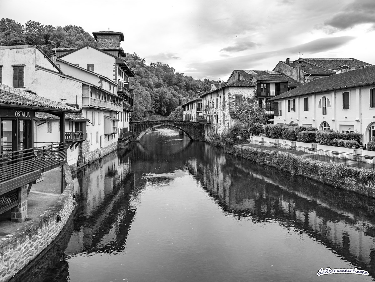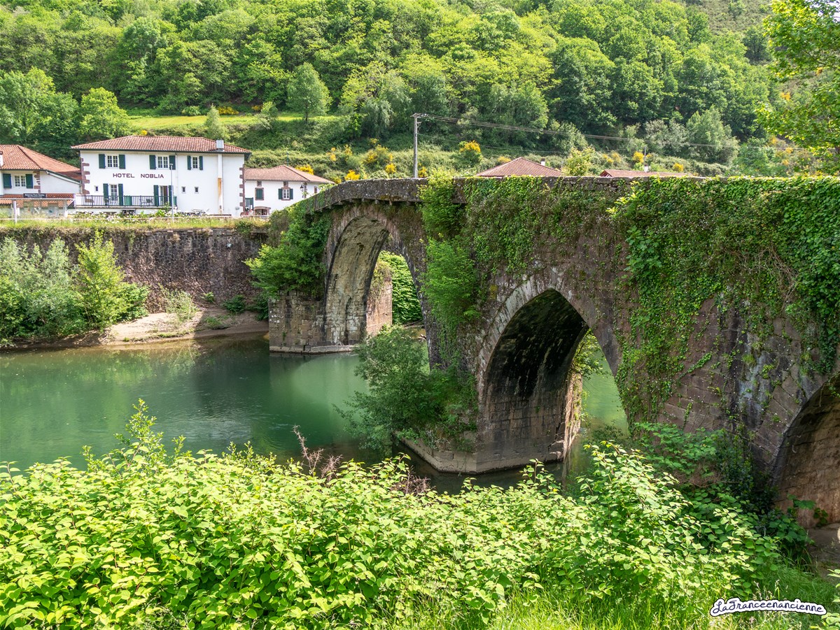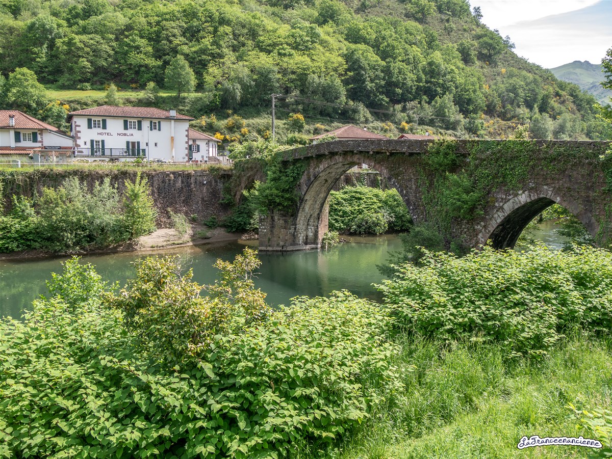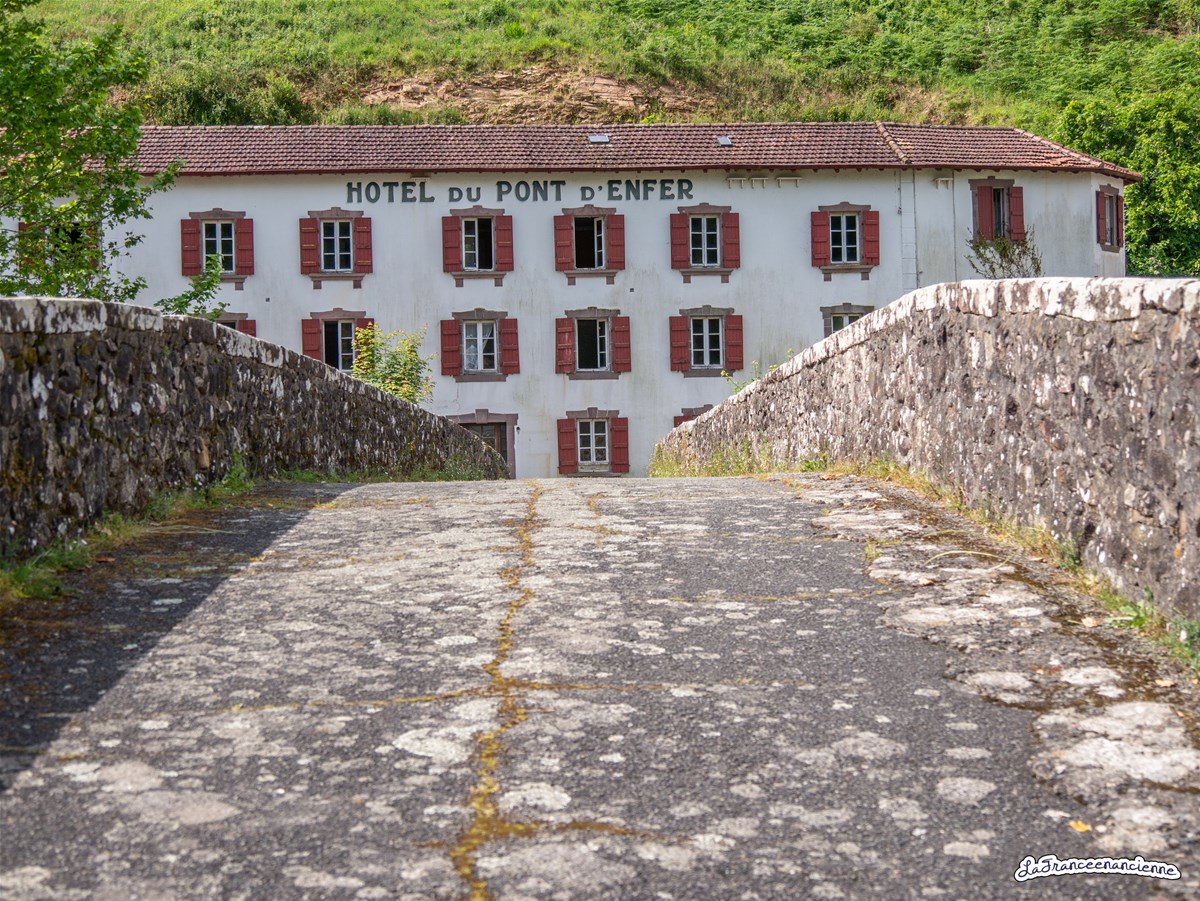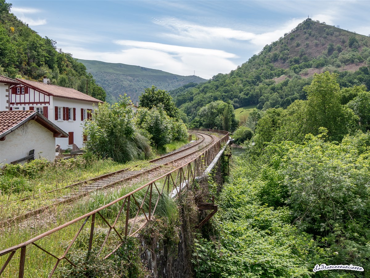 Pont d’Enfer ou Pont Nobia à Bidarray. La ligne de chemin de fer est toujours en service. Elle relie Bayonne à St-Jean-Pied-de-Port