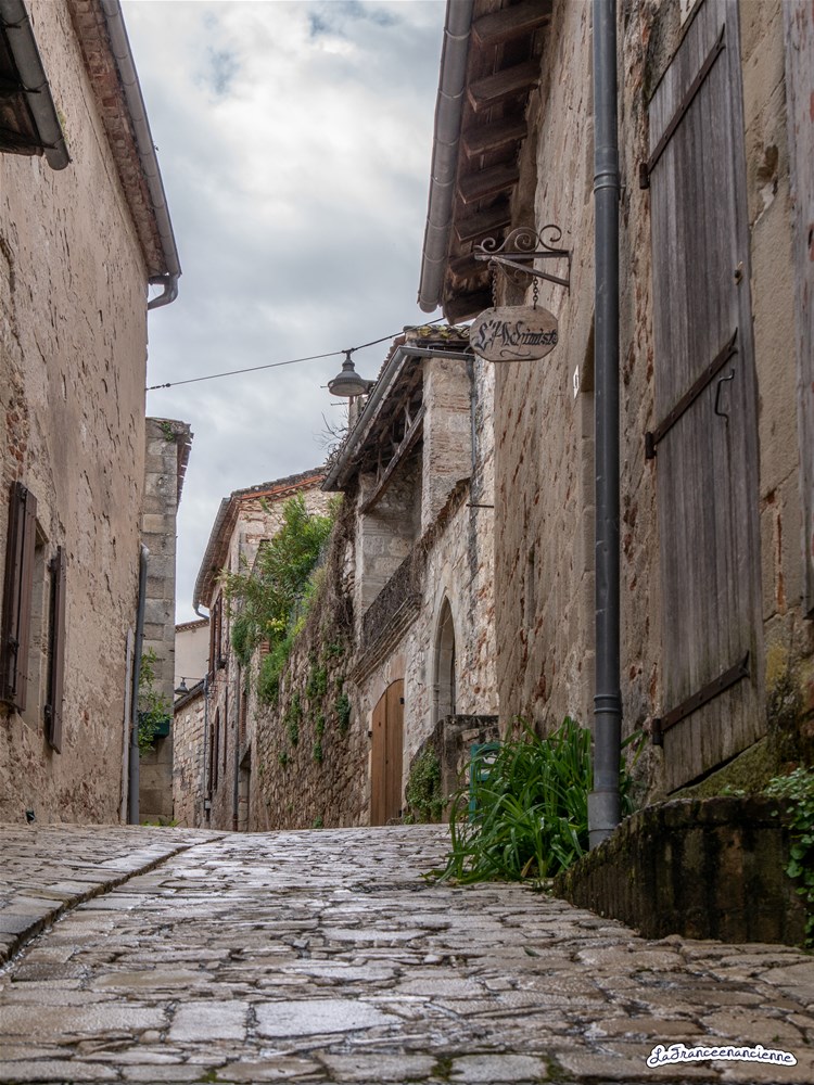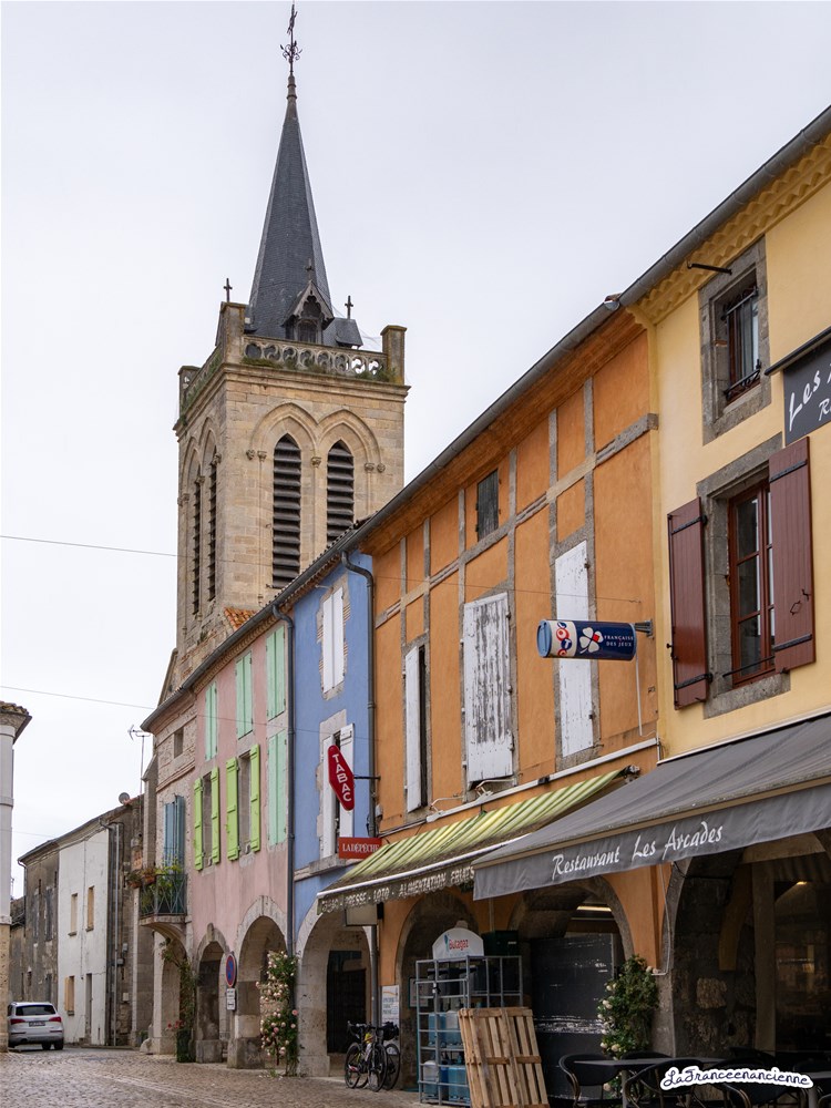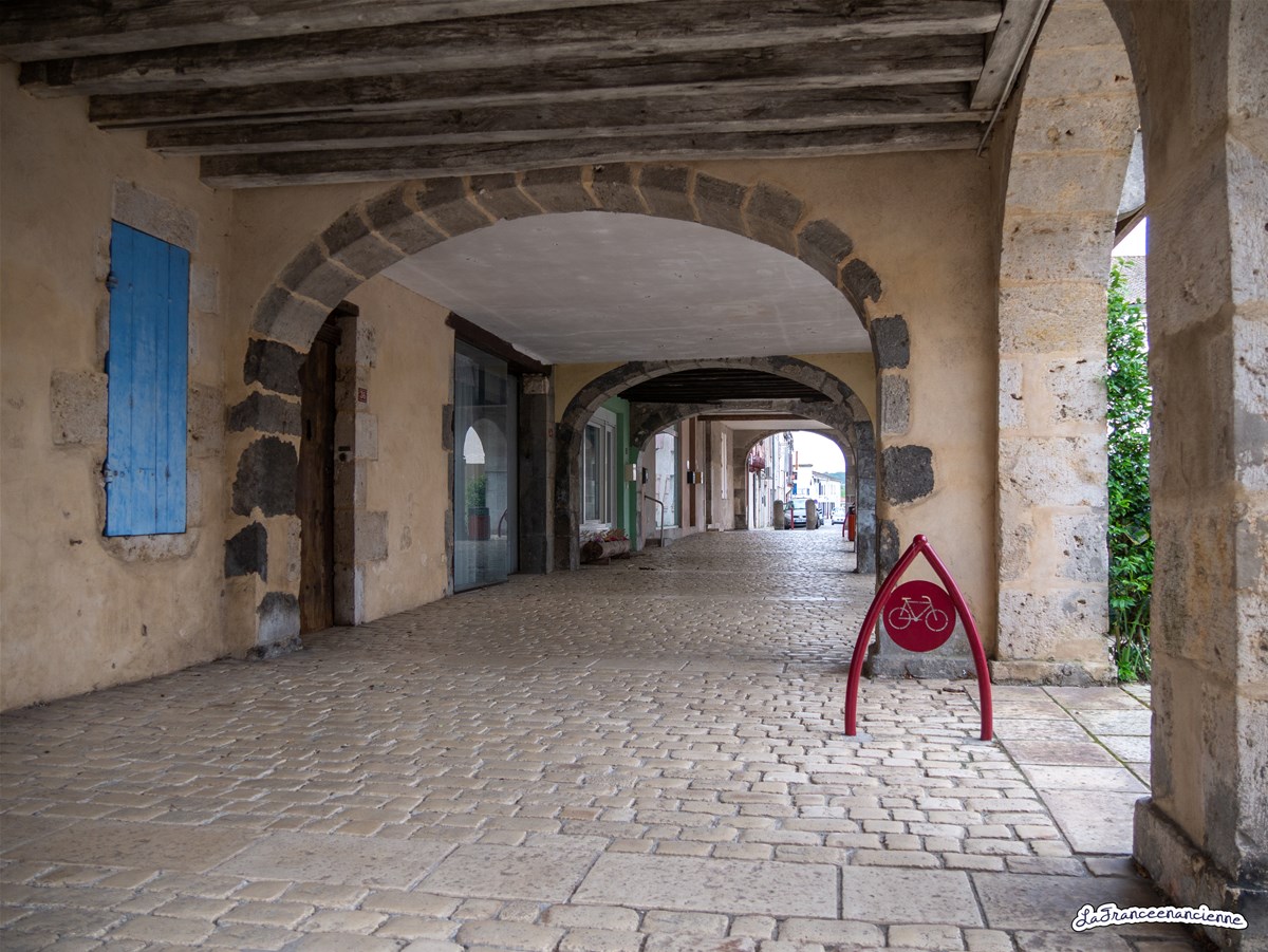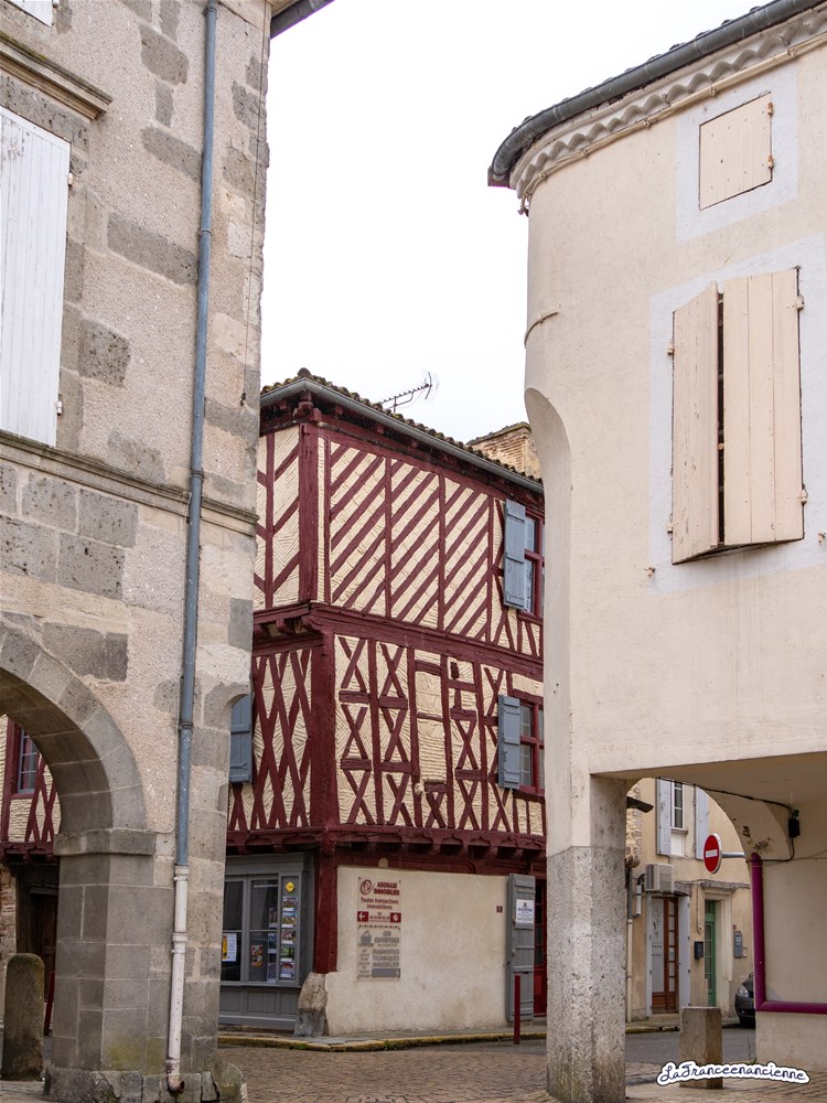 Damazan (Lot-et-Garonne) sous la pluie. Remarquez que la mairie se trouve au dessus des halles.