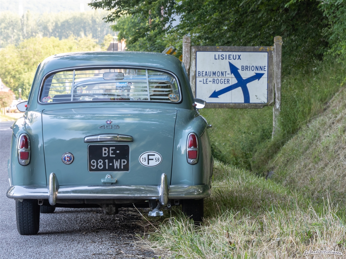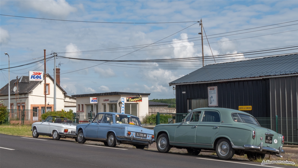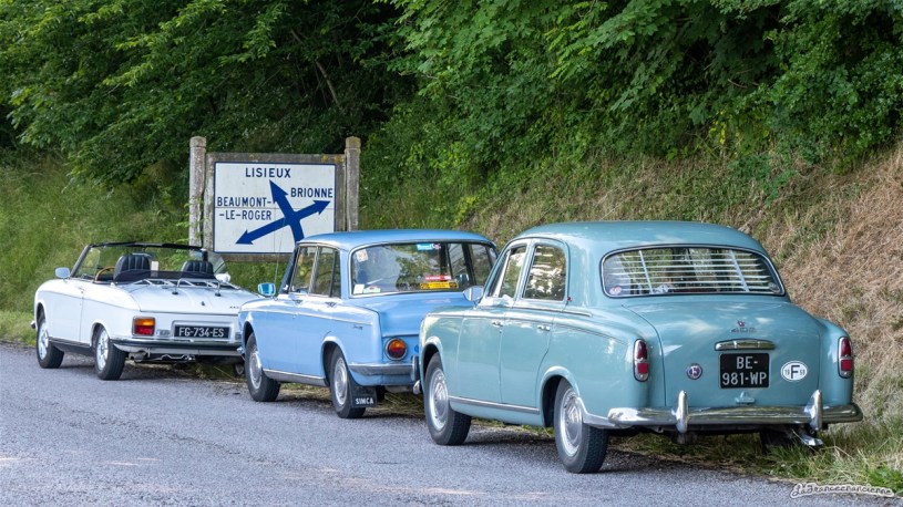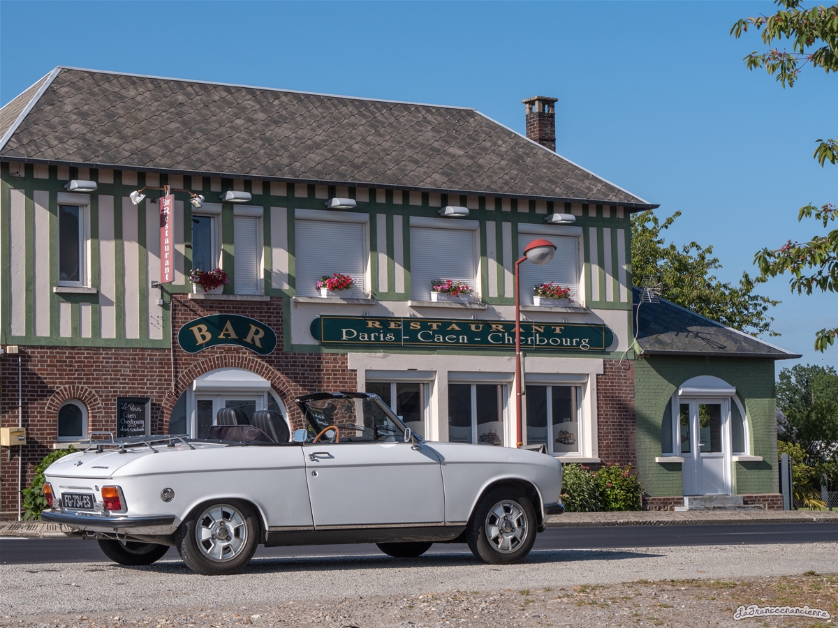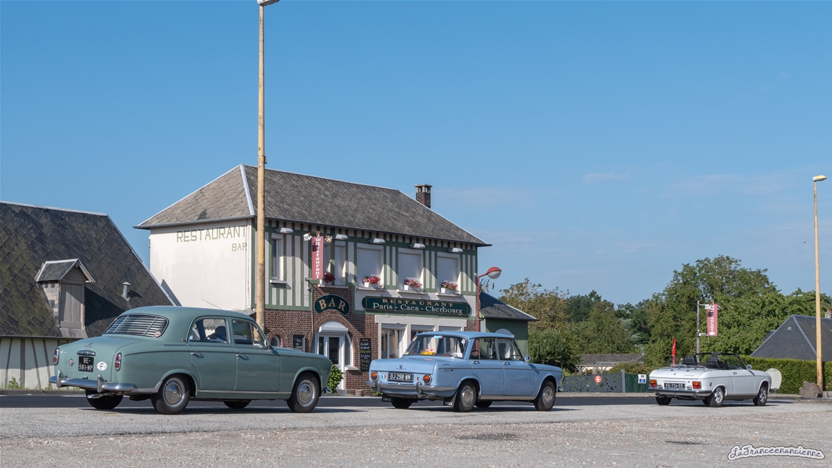 Pour l’épisode 2 de la réception d’Alain en Normandie, nous sommes partis sur la Nationale 13 à trois voitures. Philippe et son épouse en 403, Alain avec sa belle Simca 1300 et nous en 304 cabriolet,