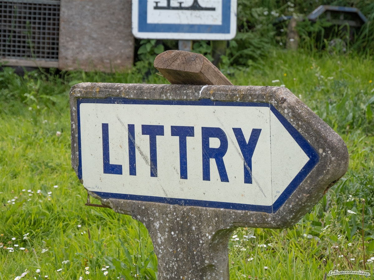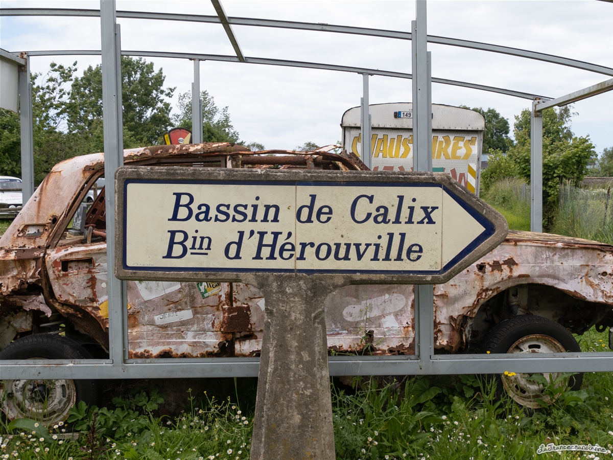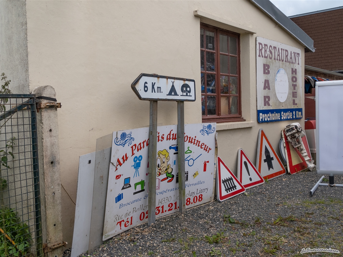 Tronçon délaissé de la RN13 et splendide panneau Michelin à l’entrée de La Rivière-Thibouville
