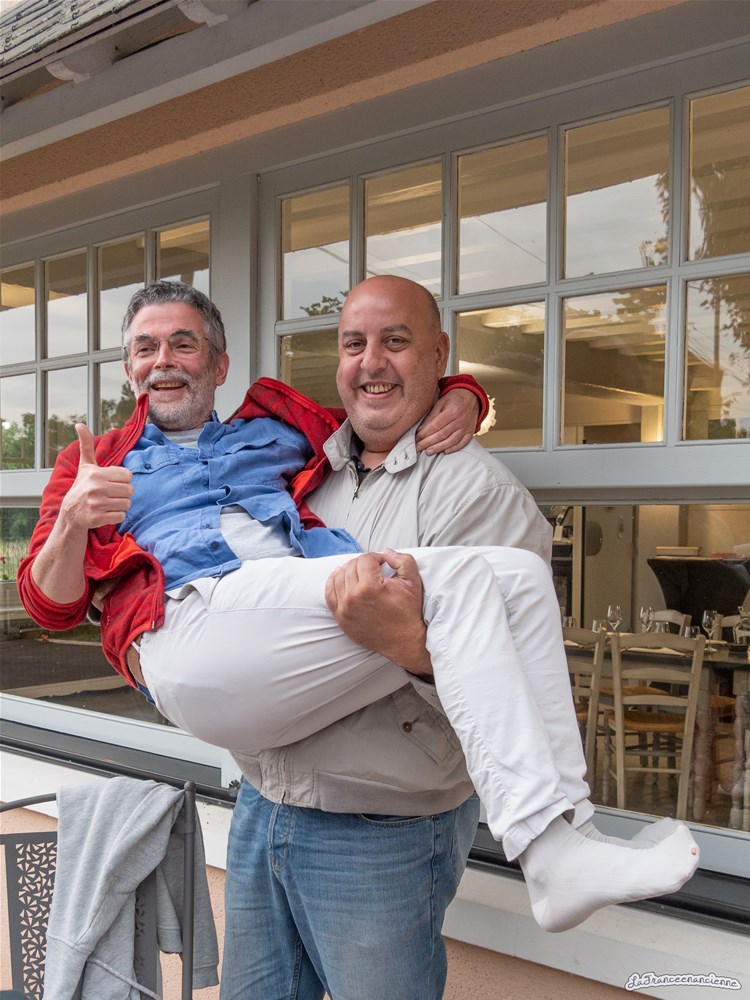 Repas du soir à l’Auberge de la Roque. Fred et Jean-Yves gagnent le jeu « Le DouKCécé ».