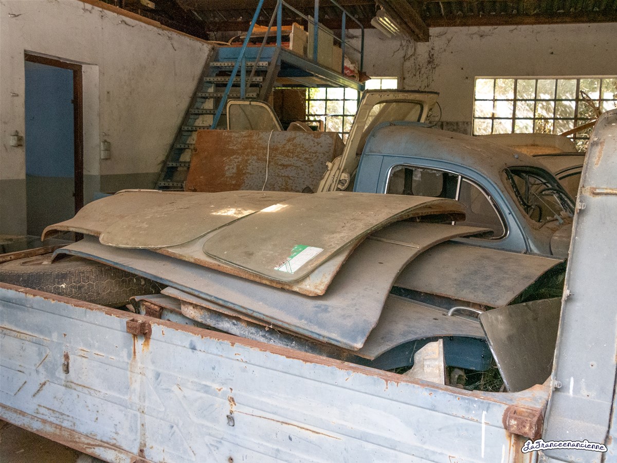 Les voitures sont quand même au sec. Je ne comprends pas pourquoi les propriétaires les laissent comme ça. Peut-être une affaire de succession ?