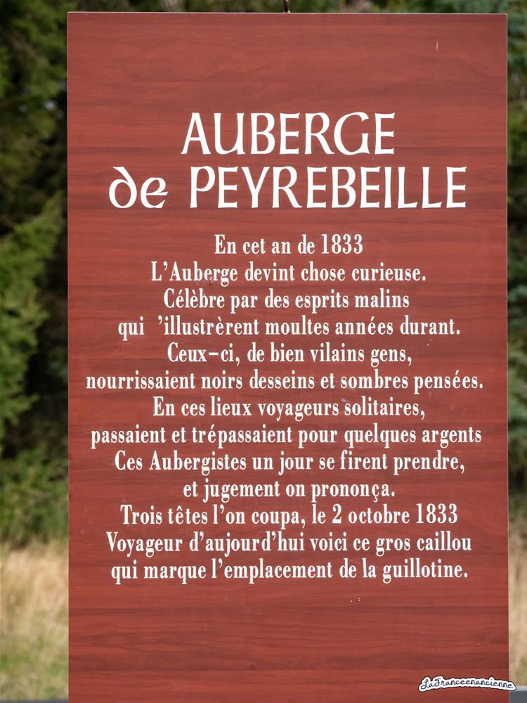 C’est ici que les époux Martin, aidés de leur domestique Jean Rochette ont assassiné pour les voler, plusieurs voyageurs qui faisaient halte chez eux pour y passer la nuit. Les aubergistes furent arrêtés, condamnés à mort et guillotinés le 2 Octobre 1833 dans la cour de l’auberge. La haute pierre marque l’endroit exact où ils ont été exécutés.