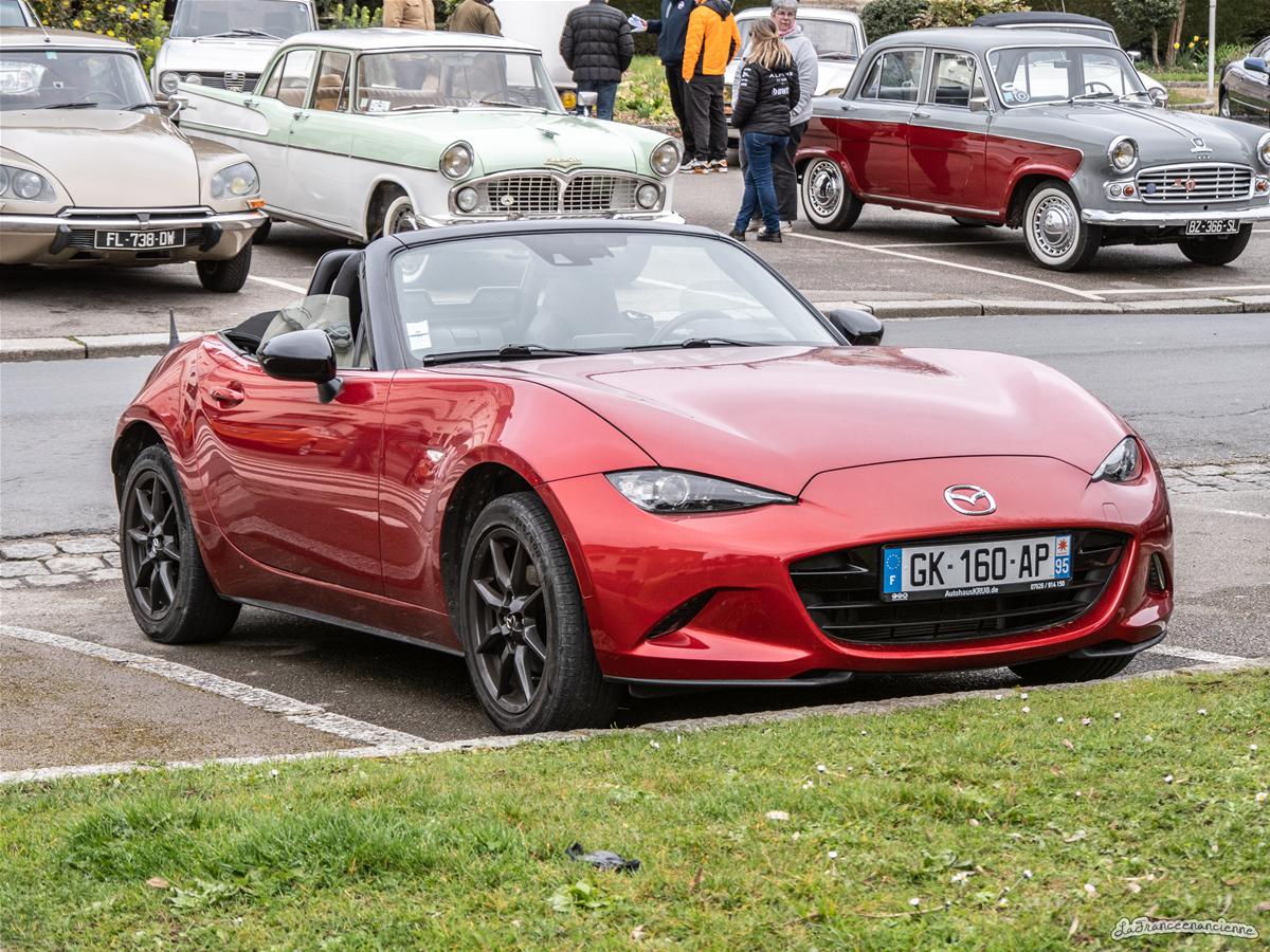 Mazda MX5 ND que j’ai photographié sur un parking voisin. Je sais, elle n’est pas ancienne, mais cette voiture me charme et reste dans la lignée des modèles NA, NB et NC.