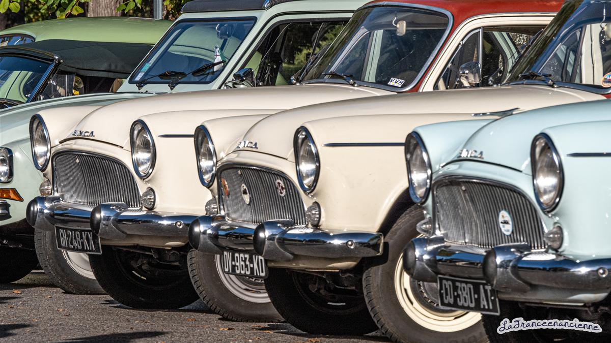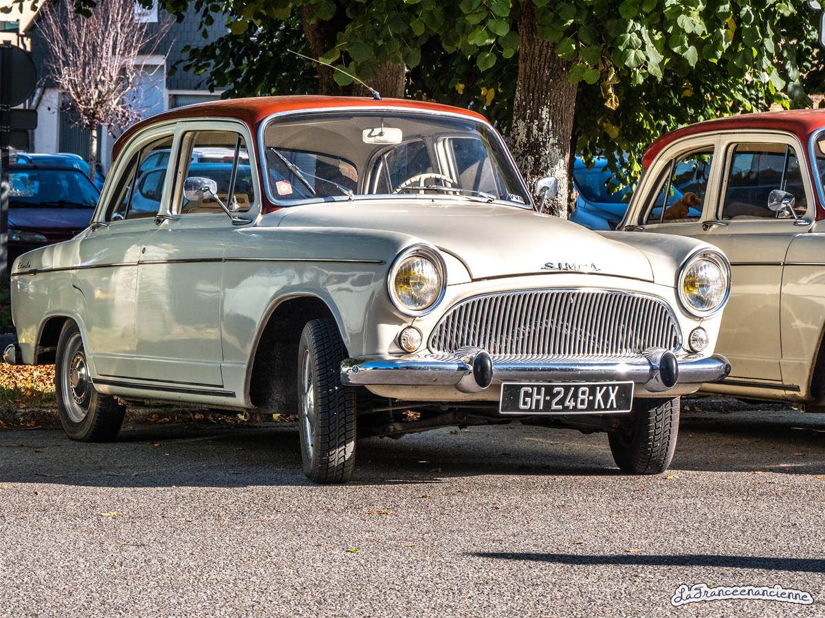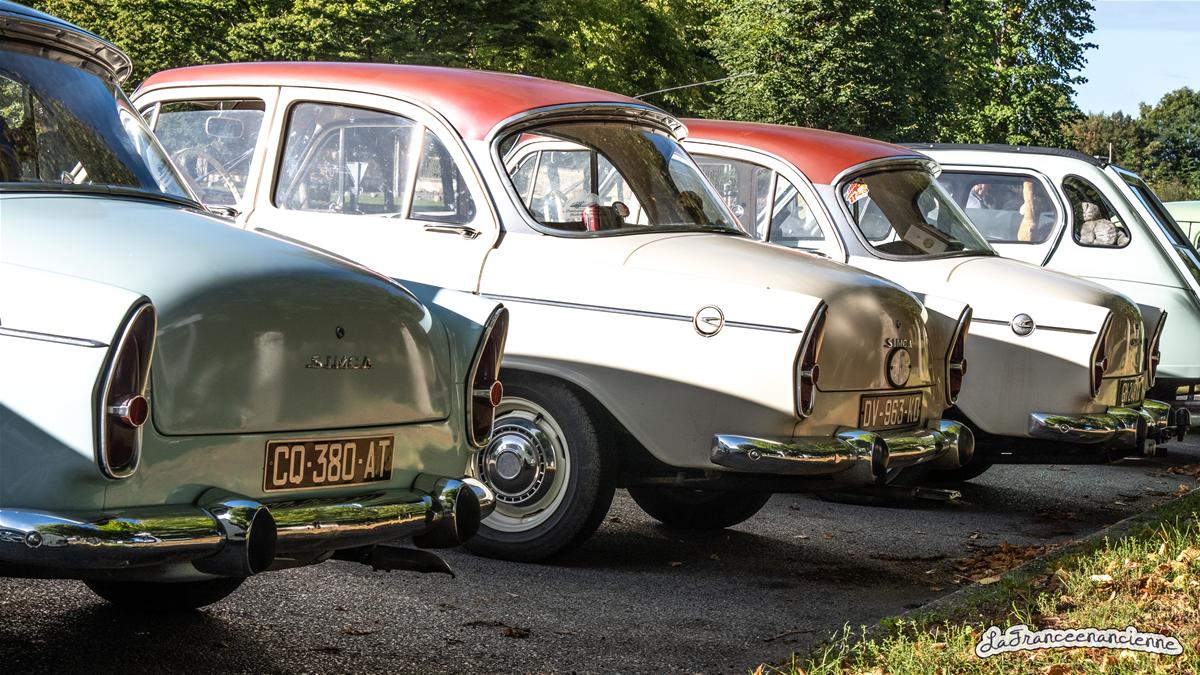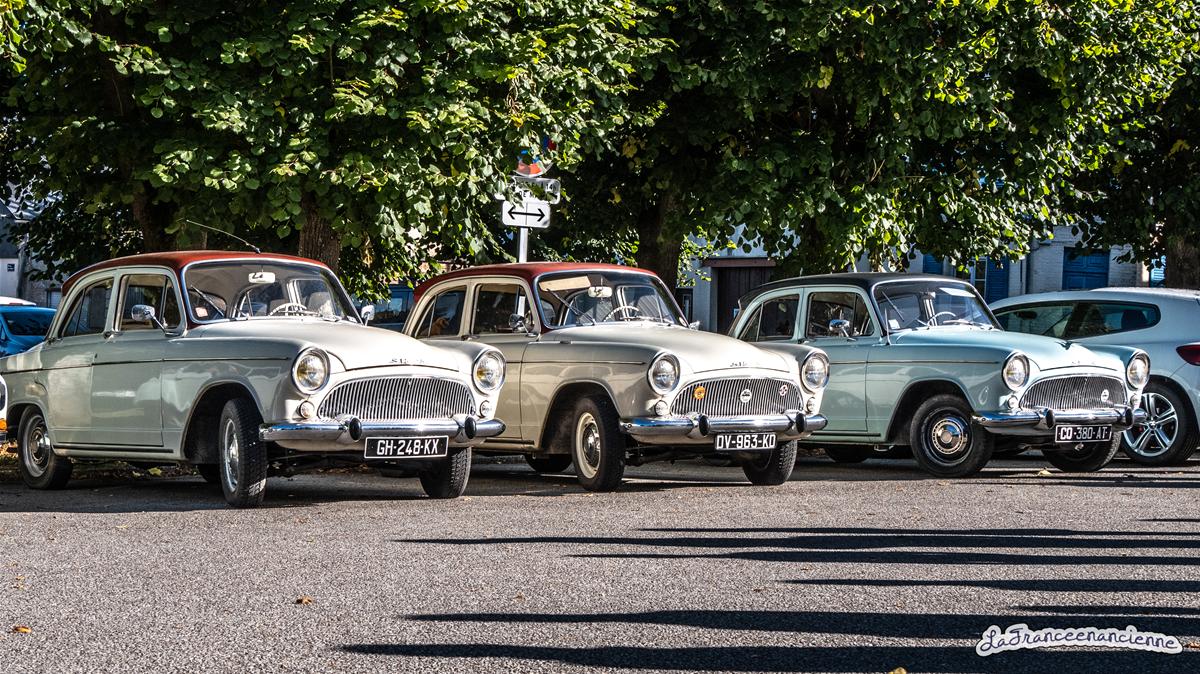 A peine rentré de Bretagne, je me suis décidé ce matin à me rendre à Conches. C’était un peu la « fête à l’Aronde » en cette belle matinée avec un alignement de trois spécimens de ces Simca populaires des années 50.